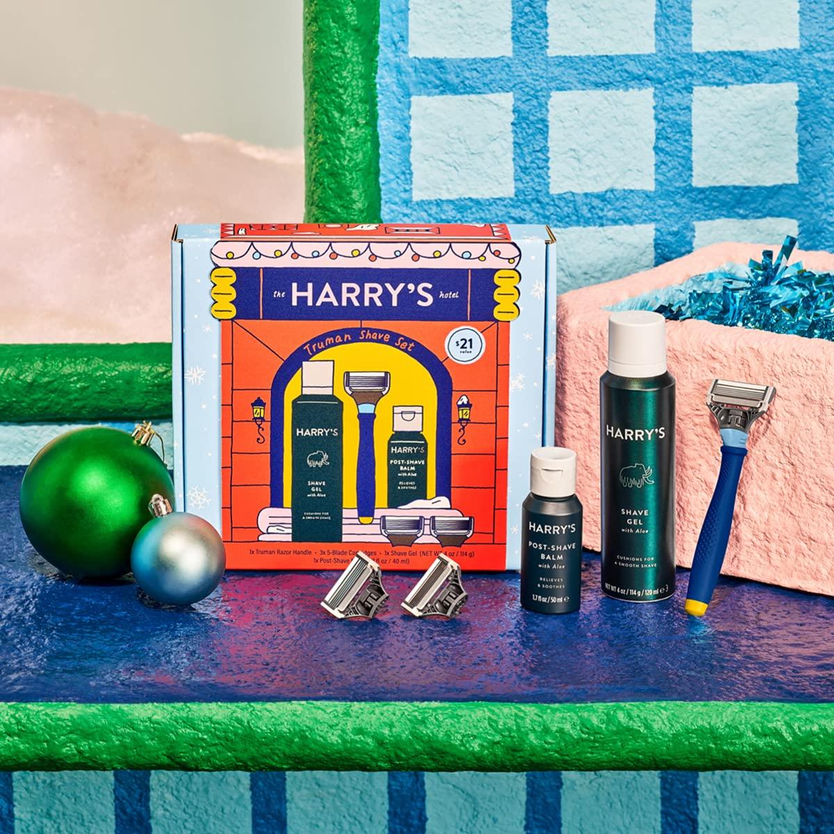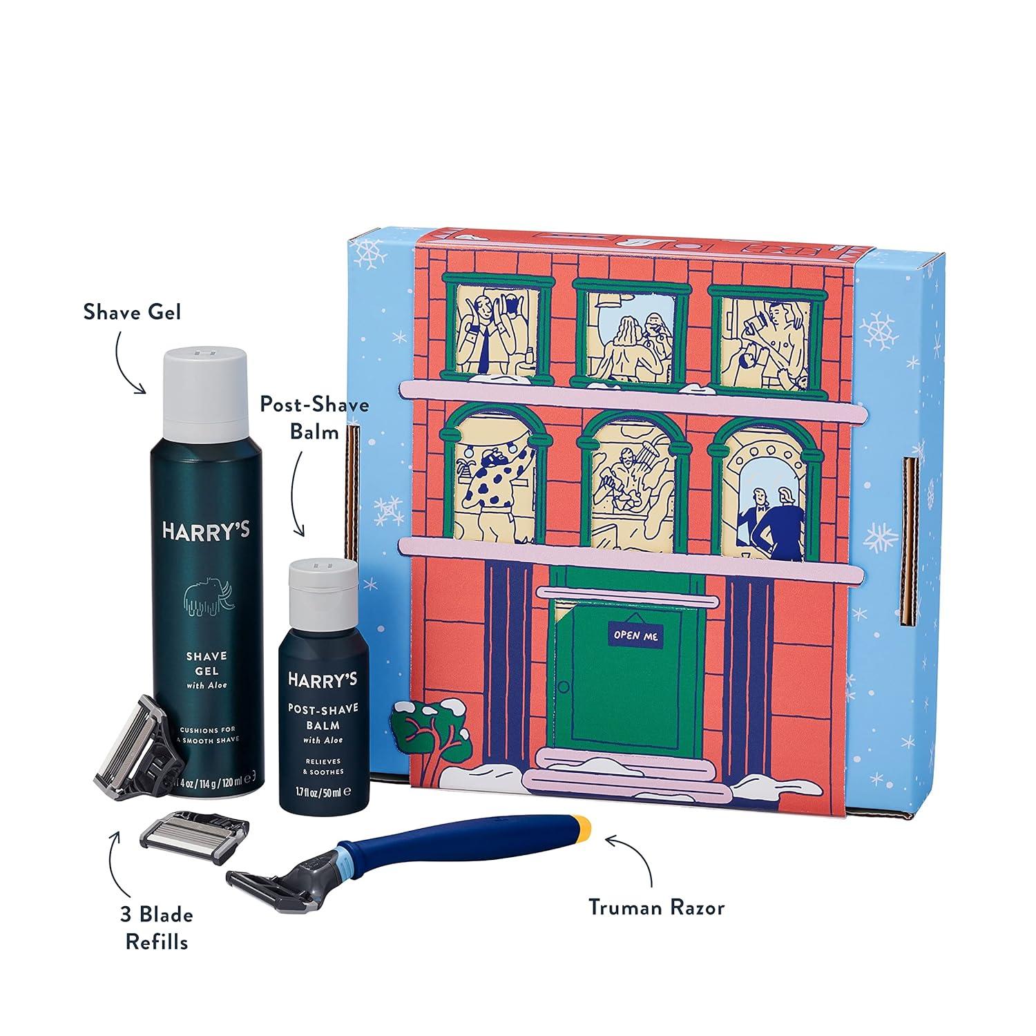 Harry's Original Holiday Shaving Kit for men combines everything you need for a complete grooming routine in a festive gift box. Featuring a limited-edition Evening Blue Truman razor handle with a rubberized, no-slip grip, this men's gift set includes three precision-engineered blade cartridges, four ounces of aloe-enriched Shave Gel for a rich lather, and 1.7 ounces of soothing Post-Shave Balm. Designed with thoughtful features and honest pricing, this kit is perfect for gearing up for a holiday party or a quiet night out.