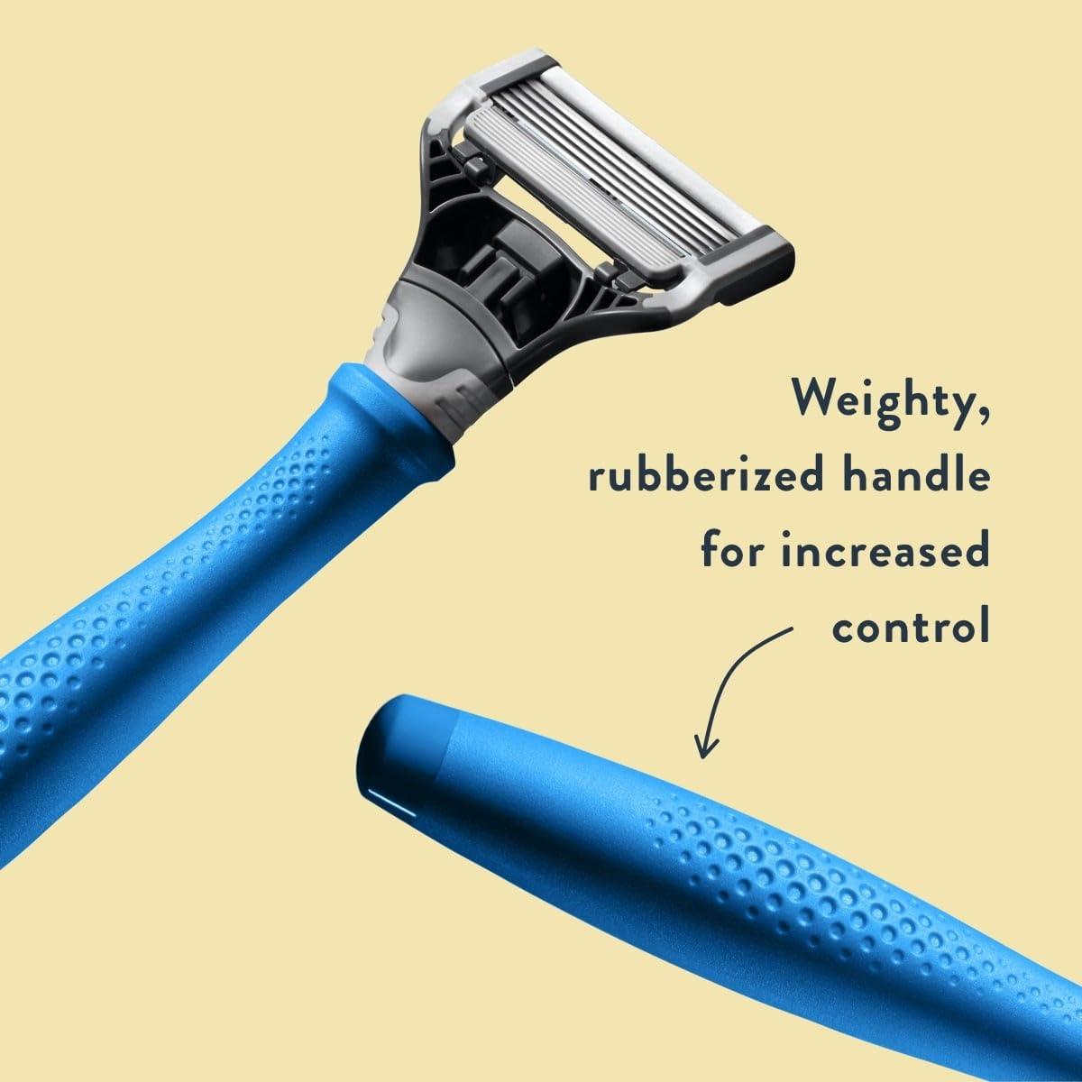 INCREASED CONTROL – Harry's Men's Razor Surf Blue handle is designed with a rubberized matte exterior, textured grip pattern, and weighted core for maximum grip and control.