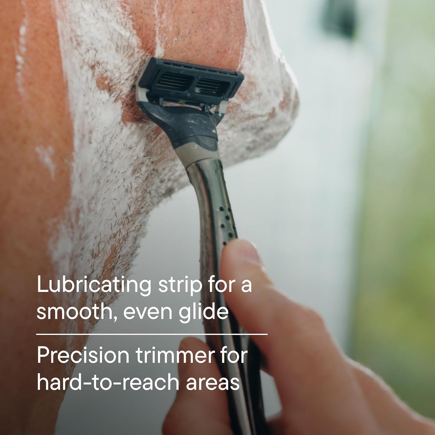 We sweat the small stuff so you don't have to. Harry's razors for men include everything you need for a close, comfortable shave: sharp blades, a flex hinge, a lubricating strip, and a precision trimmer. Plus, guys who shave with us four times a week say their eighth shave is as smooth as their first. We've packed up your box with our Harry's Original Truman razor handle, five German-engineered Harry's razor blade refills, 4 ounces of Foaming Shave Gel for a rich lather, and a travel cover to protect your blades.